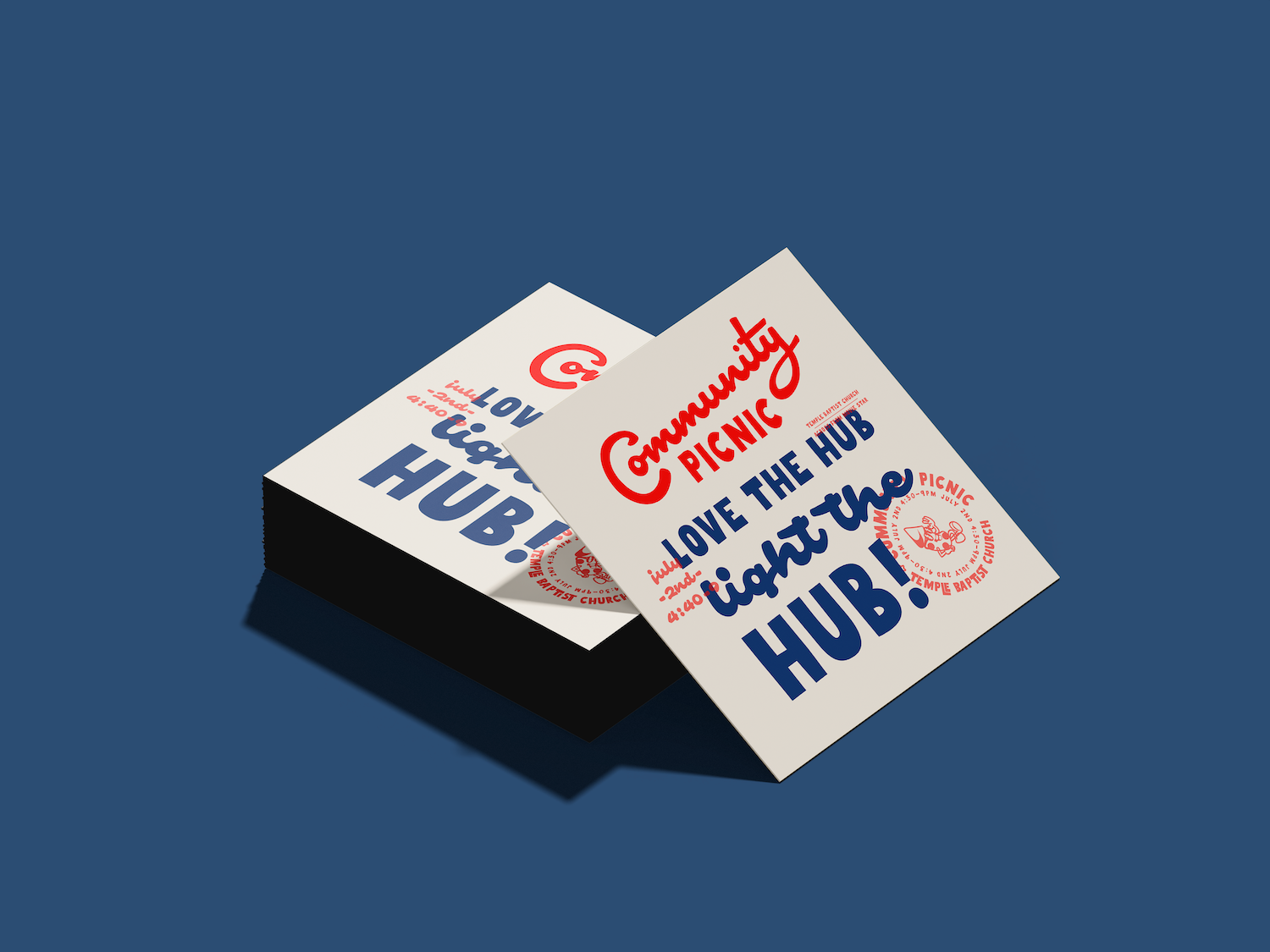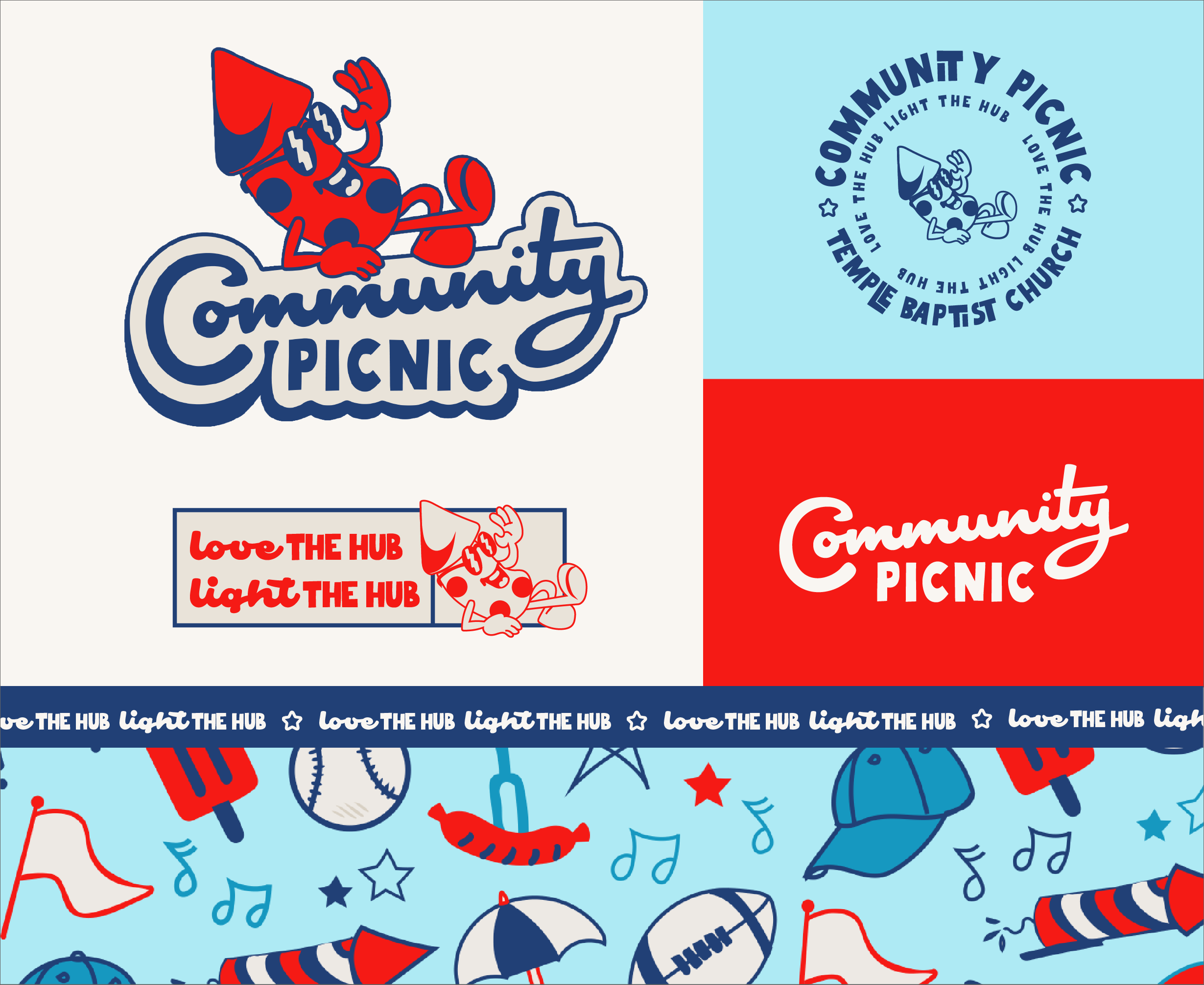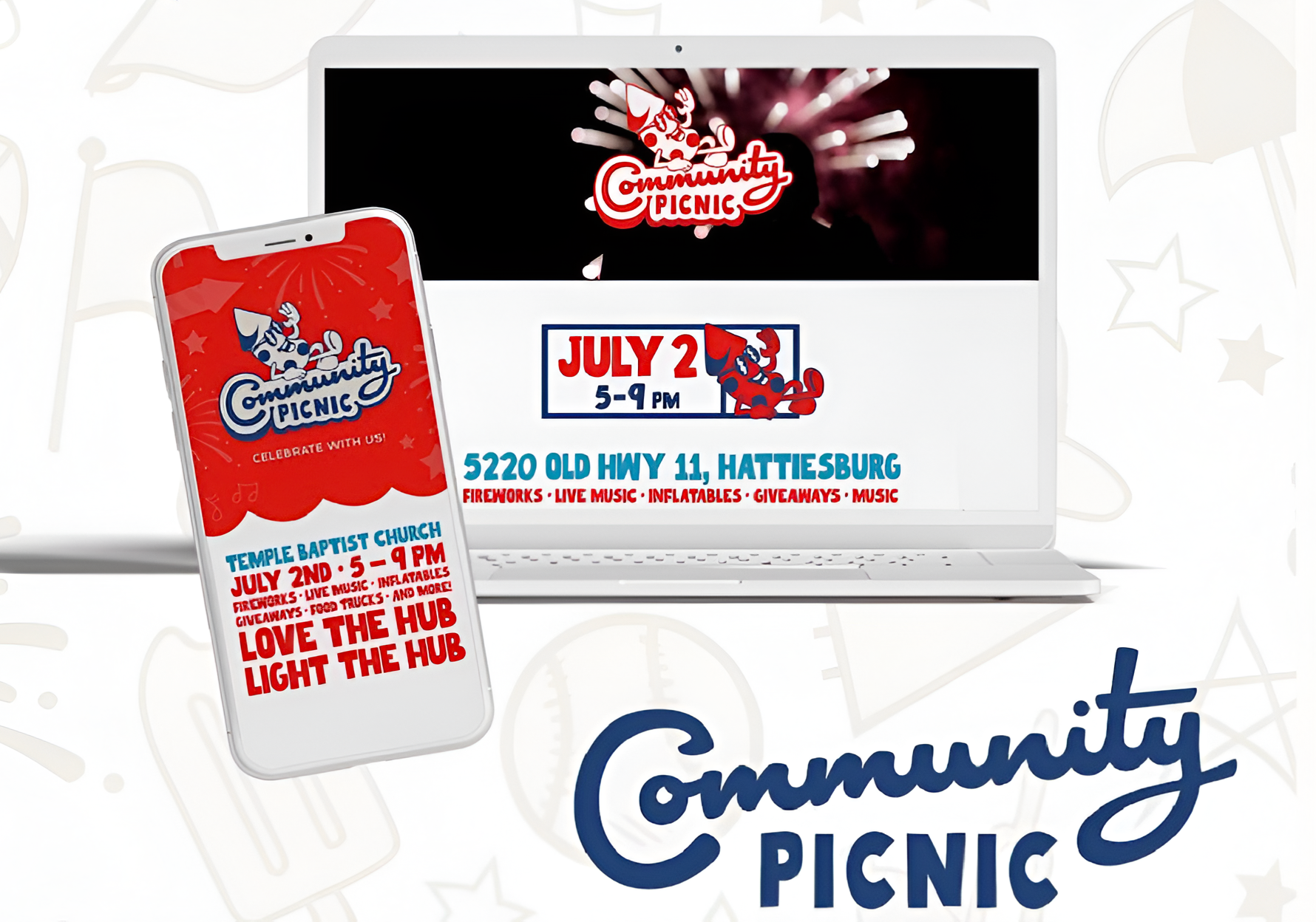 Community Picnic is an annual family event hosted by Temple Baptist Church for the city of Hattiesburg on Fourth of July weekend. The goal of this branding project was to create something fun, inviting, timeless, and patriotic.